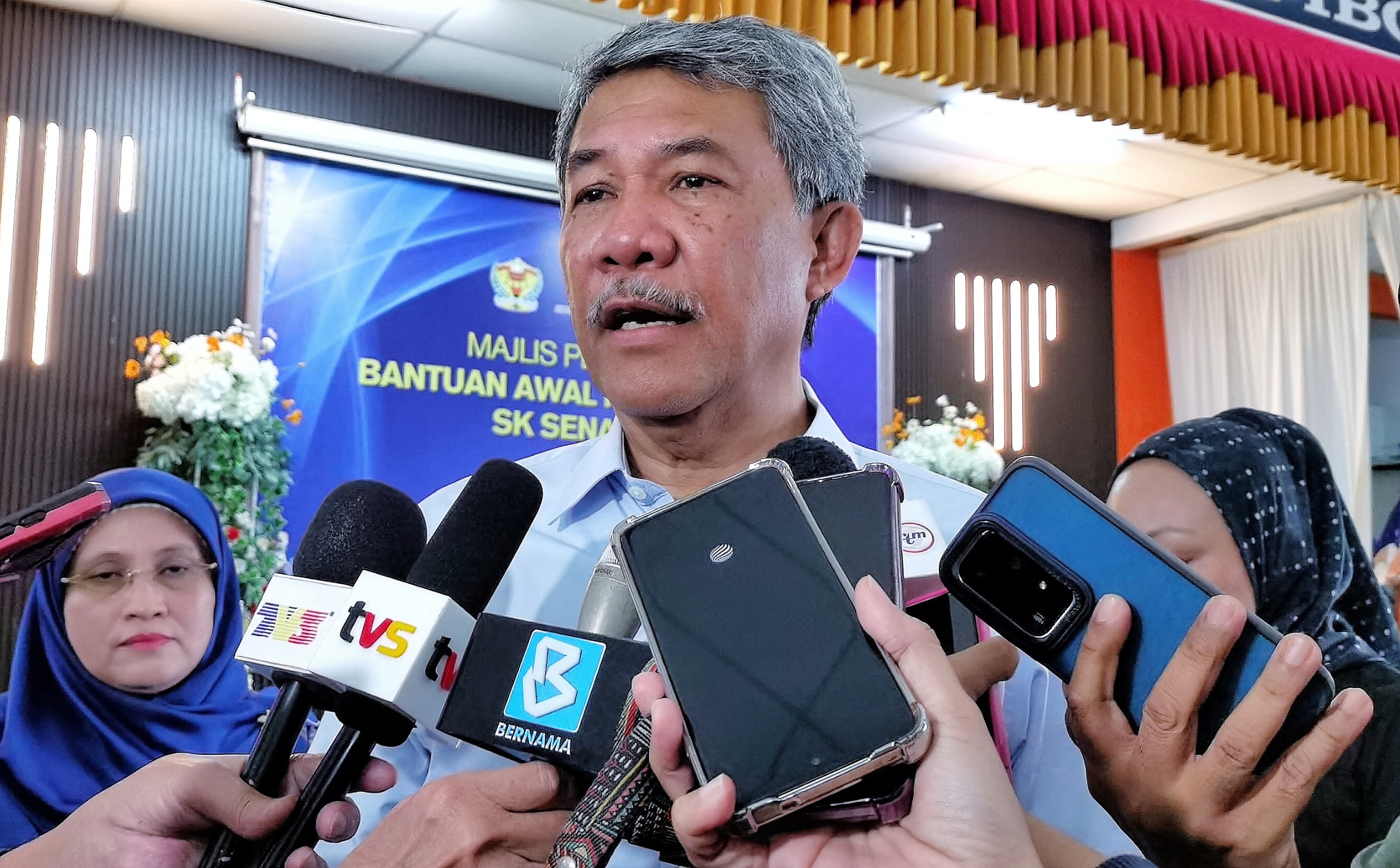Mohamad Hasan, ketika sidang akhbar selepas Majlis Penyerahan Bantuan Awal Persekolahan SK Senawang Tahun 2026, hari ini.-Foto oleh MOHD SHAHJEHAN MAAMIN/KOSMO!