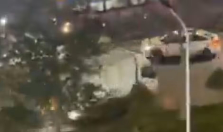 Sebuah kenderaan perkhidmatan kecemasan dengan lampu berkelip kemudian tiba ketika jeritan kedengaran dalam klip video itu.