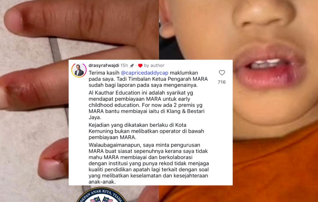 Bagaimanapun, Asyraf Wajdi menegaskan siasatan tetap akan dijalankan secara menyeluruh kerana tidak mahu Mara terus membiayai atau berkolaborasi dengan mana-mana institusi yang mempunyai rekod gagal menjaga kualiti pendidikan dan keselamatan kanak-kanak.