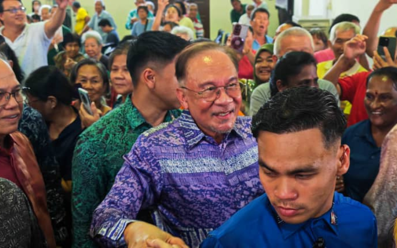 ANWAR beramah mesra bersama penduduk sempena Majlis Ramah Mesra Masyarakat Tionghua di Dewan Utama SJKC Perting di Bentong hari ini.