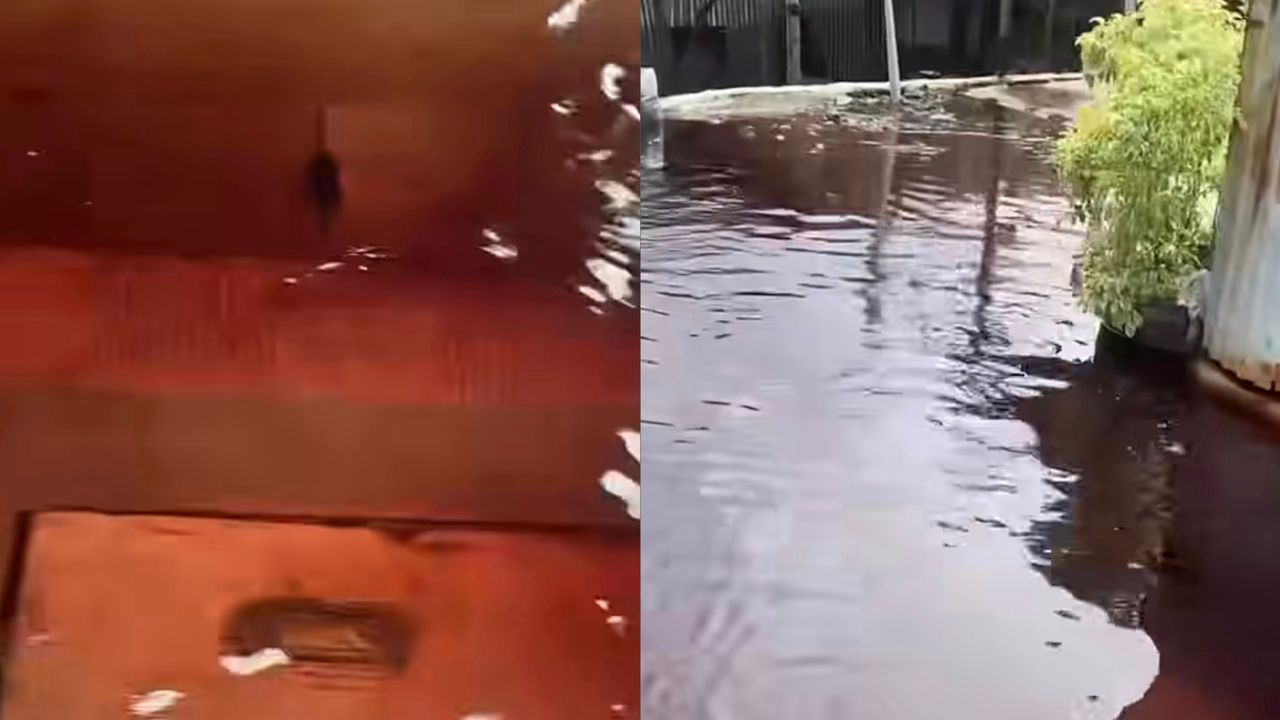 Rakaman video dimuat naik di platform Instagram oleh akaun @pekalonganinfo menunjukkan perakam sedang melalui sebatang jalan raya yang dinaiki air berwarna merah.