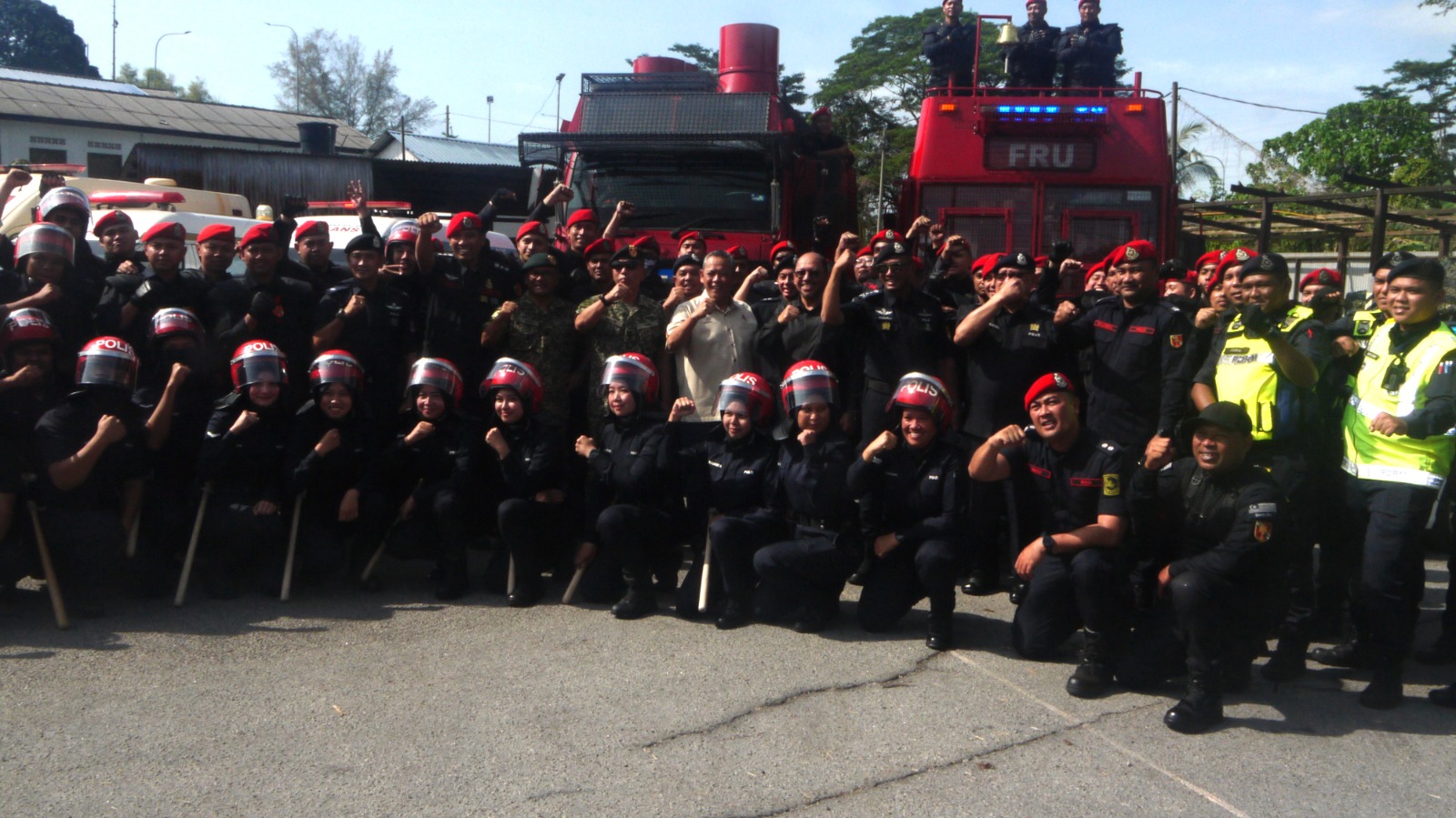 AMINUDDIN bergambar bersama polis FRU yang terlibat dalam Eksesais Perisai Bandar di Kem Sikamat di sini, hari ini. Foto oleh NUR SHARIEZA ISMAIL / KOSMO!