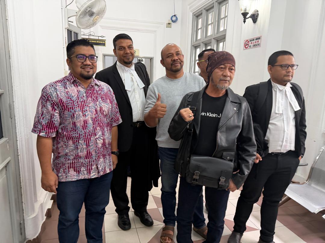 CHEGUBARD (kiri) ketika hadir ke Mahkamah Tinggi Johor Bahru hari ini. Foto BAZLAN IBRAHIM