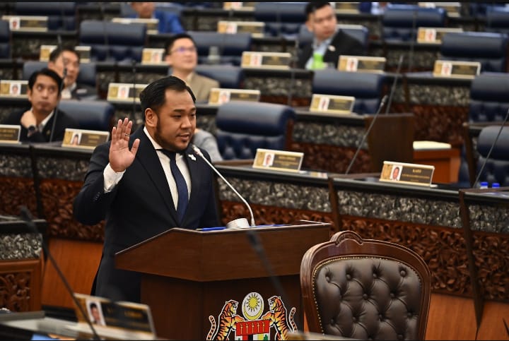 Mohd. Kurniawan Naim mengangkat sumpah sebagai Ahli Parlimen Kinabatangan di Dewan Rakyat hari ini - Foto JABATAN PENERANGAN