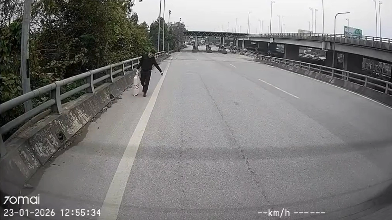 Rakaman CCTV menunjukkan guni putih itu jatuh dari sebuah trak pikap di pintu masuk lebuh raya pada 23 Januari.