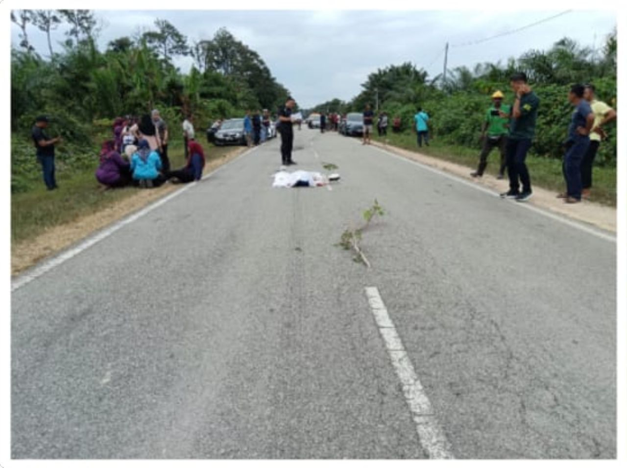 Seorang gadis maut digilis di jalan besar Palong 7 dan 8, di Jempol, petang tadi. -Foto IHSAN POLIS