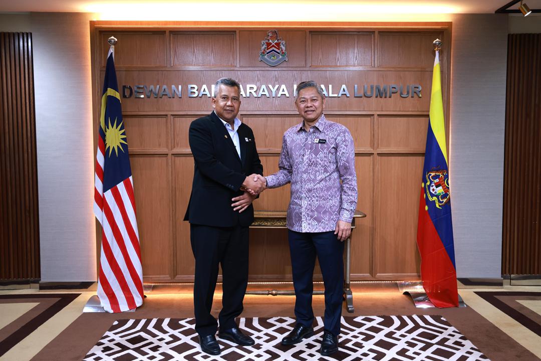 Azmi (kiri) mengadakan kunjungan hormat bersama Datuk Bandar Kuala Lumpur sempena sesi pembentangan laporan tatakelola di, Menara DBKL, semalam.