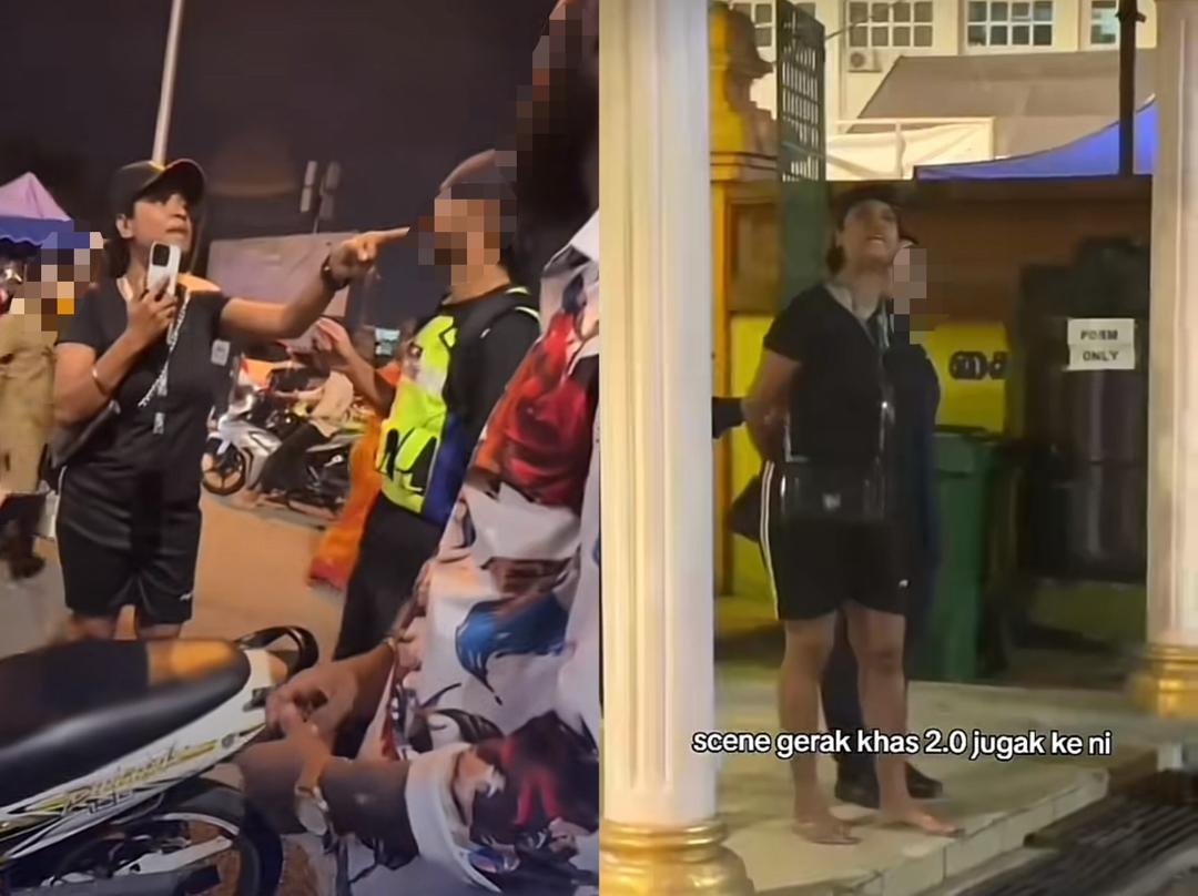 Dalam sebuah video lain yang mencuri perhatian orang ramai pula, ‘Inspektor Shiela’ dilihat sempat memberikan ‘ucapan’ kepada orang ramai di kawasan tersebut selepas digari polis.