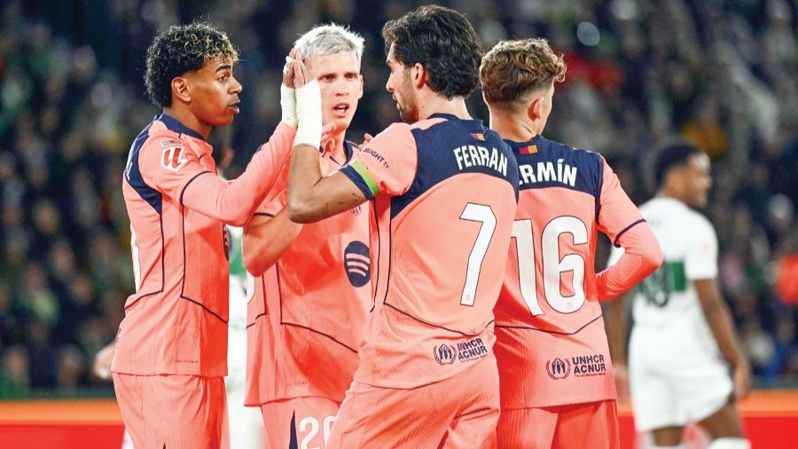 ELCHE – Lamine Yamal meledak satu gol dan mencipta satu bantuan jaringan membantu Barcelona mengekalkan cengkaman di puncak La Liga selepas menang 3-1 ke atas Elche di Estadio Manuel Martinez Valero awal pagi semalam.