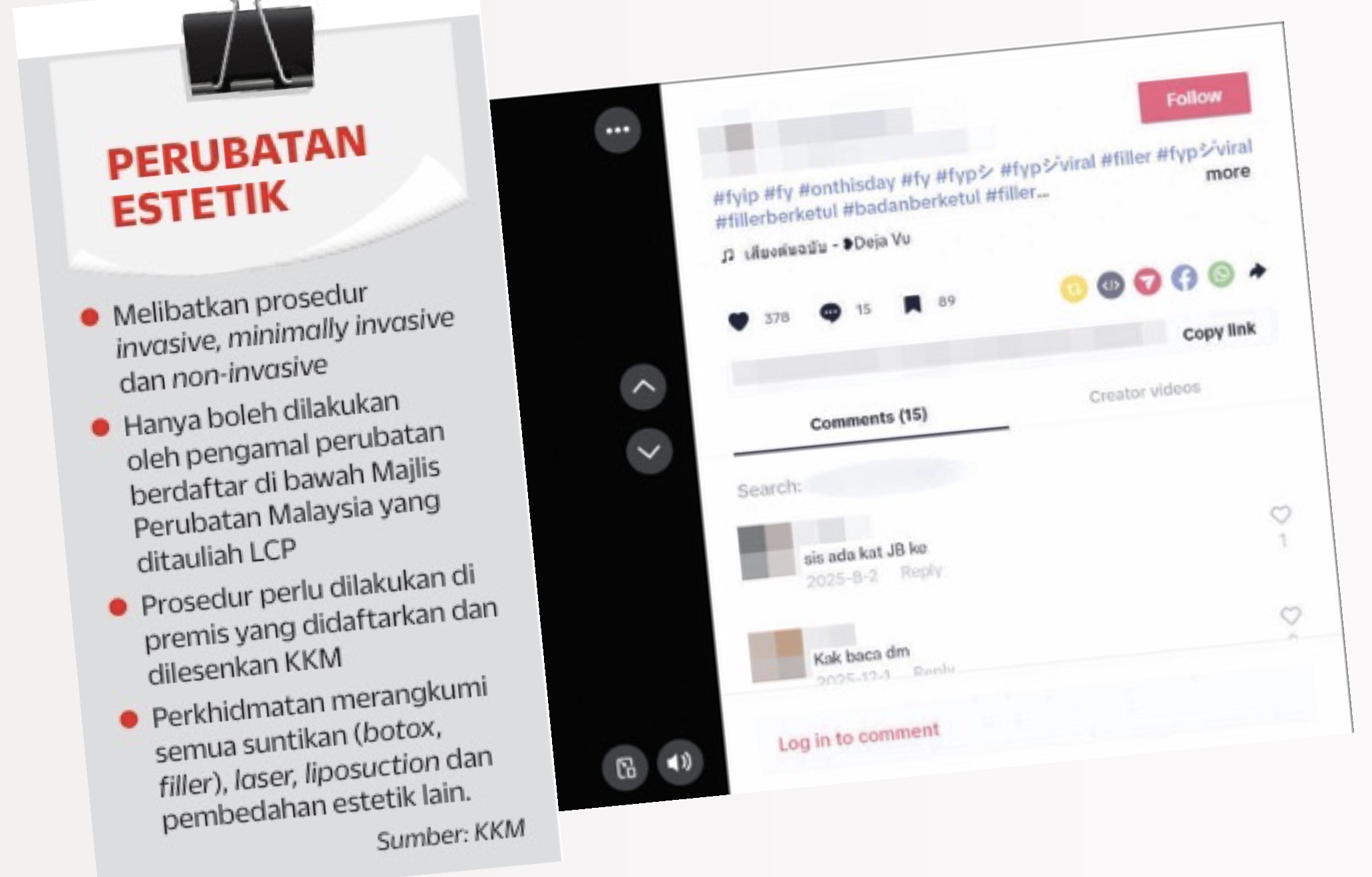 PETALING JAYA – ‘Pakar estetik segera’ dilihat semakin berani mempromosikan suntikan pada payudara dan punggung di platform media sosial termasuk TikTok sekali gus mendedahkan pengguna kepada risiko termasuk kematian. Mereka menjalankan aktiviti haram itu di premis termasuk apartmen yang dijadikan sebagai studio kecantikan. Pakar Estetik Kecantikan dan Anti-Penuaan, Dr. Aidil Azry Mokhtar berkata, kebanyakan promosi breast filler yang ditawarkan di TikTok bukan daripada klinik berdaftar, sebaliknya dilakukan oleh pendandan atau terapi kecantikan. “Kebanyakan doktor berdaftar sedia maklum prosedur tersebut adalah……