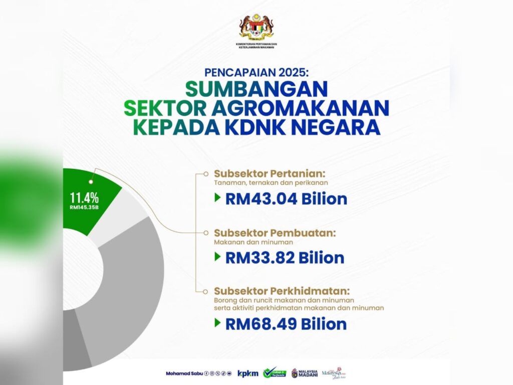 PETALING JAYA – Sektor agromakanan menyumbang sebanyak RM145.35 bilion kepada Keluaran Dalam Negara Kasar (KDNK) negara pada tahun lalu.