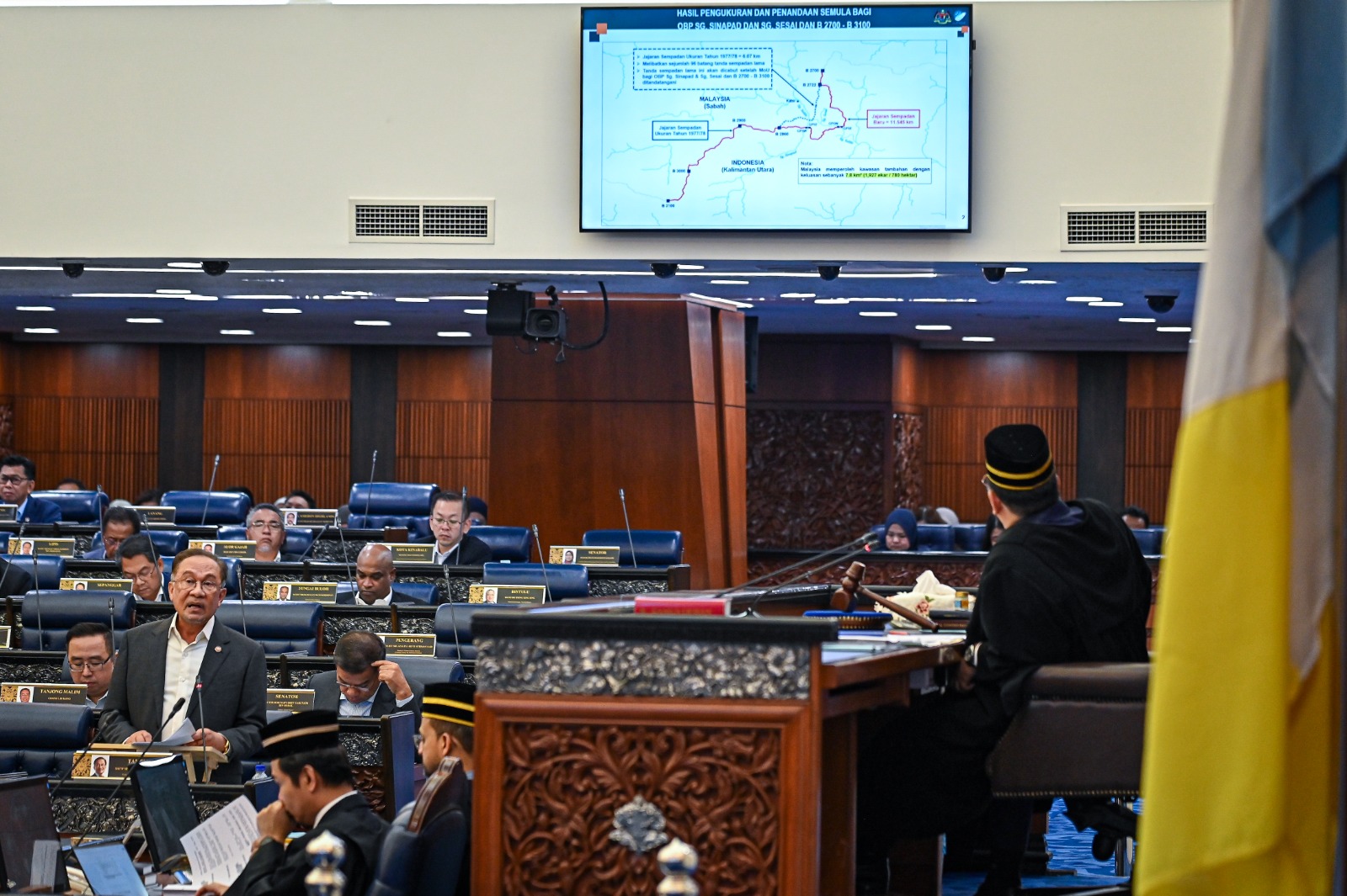 Terdahulu, Anwar membidas laporan yang mendakwa Malaysia telah menyerahkan 5,207 hektar tanah kepada Indonesia sebagai pampasan bagi tiga buah kampung di kawasan Nunukan.