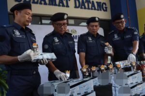 “Turut disita pelbagai peralatan lain yang dipercayai digunakan untuk memproses minuman keras termasuk tong berisi etanol, gulungan setem cukai kastam palsu, peralatan pembungkusan minuman keras, mesin pemasang penutup dan pelekat label.