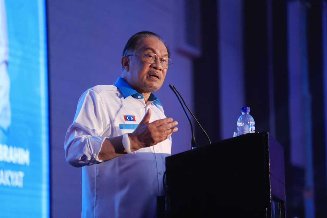 Anwar Ibrahim berucap pada Konvensyen Keadilan Selangor 2026 di Pusat Konvensyen MPAJ di sini hari ini. GAMBAR: FARIZ RUSADIO/KOSMO!