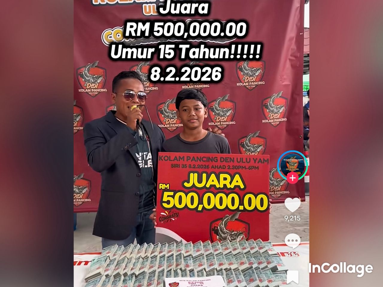 “Tahniah diucapkan kepada adik muda juara RM500,000. Betul-betul rezeki durian runtuh.