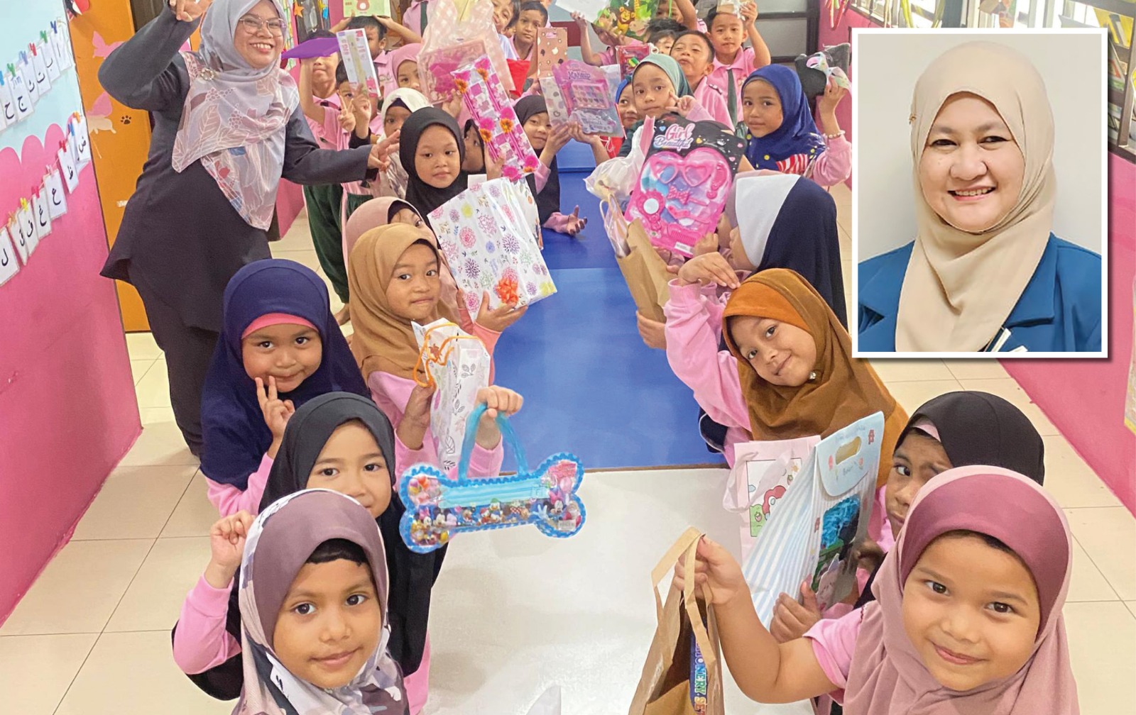 MURID-MURID kelihatan ceria dan bersemangat menimba ilmu di Tadika Tinta Khalifah, Sungai Karangan, Kulim, Kedah. - Gambar kecil Siti Ruzita