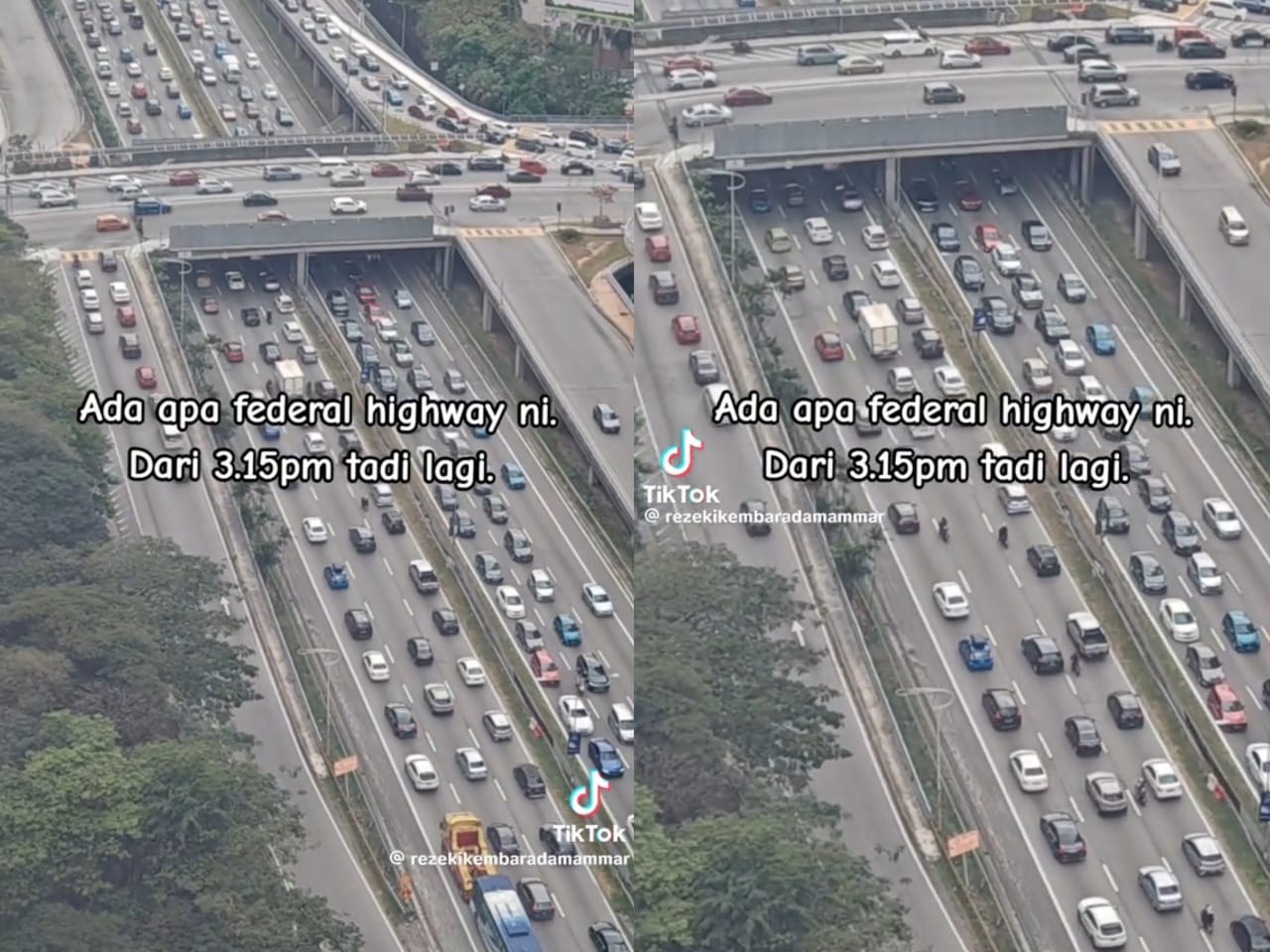 Seorang pengguna TikTok @Myra berkongsi video keadaan di Lebuh Raya Persekutuan di kawasan Petaling Jaya yang berdepan kesesakan lebih awal berbanding waktu puncak ketika orang ramai pulang dari tempat kerja.