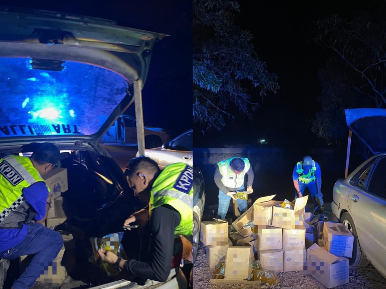 Serbuan dijalankan kira-kira pukul 12.30 tengah malam semasa anggota penguat kuasa KPDN bersama Pasukan Polis Marin Wilayah 3 dan Pasukan Gerakan Am (PGA) melihat sekumpulan lelaki sedang memunggah kotak minyak masak ke dalam perahu.