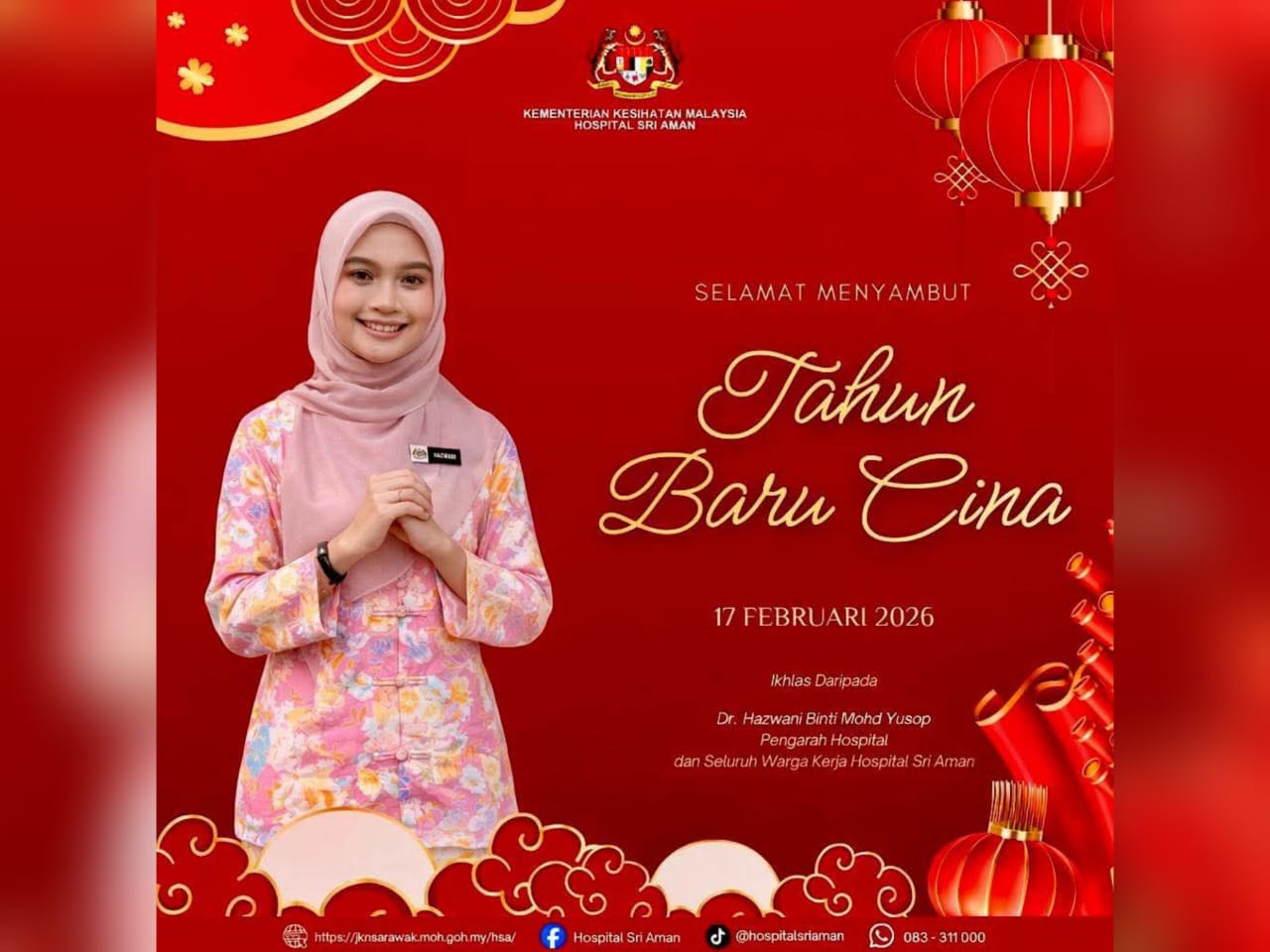 PETALING JAYA – Hantaran poster ucapan Selamat Tahun Baharu Cina di Facebook rasmi Hospital Sri Aman, Sarawak mendapat perhatian ramai sejak semalam.