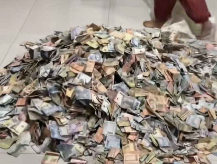 Rakaman video dimuat naik di media sosial menunjukkan sejumlah wang kertas yang berada di dalam guni tersebut.