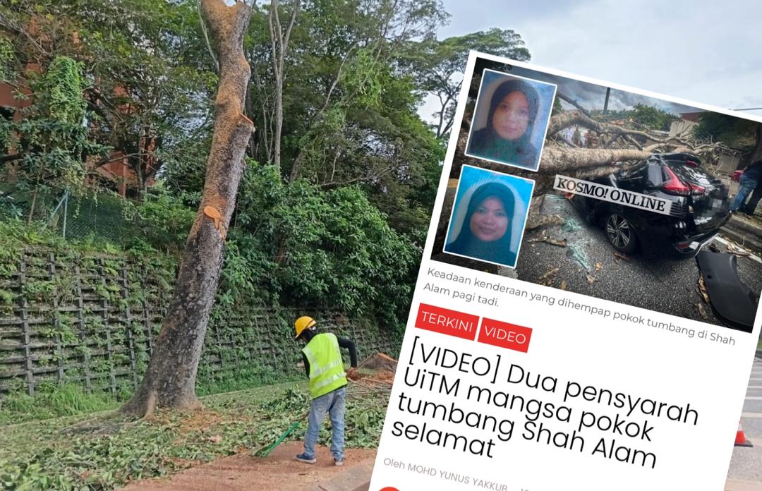 Kosmo! sebelum ini melaporkan dua pensyarah Fakulti Kejuruteraan Kimia, UiTM Shah Alam iaitu Nur Shahidah Ab Aziz, 39, dan Dr. Shareena Fairuz Abdul Manaf, 42, cedera selepas kenderaan pelbagai guna jenis Mitsubishi Xpander dihempap pokok di jalan persiaran tersebut. – KOSMO! ONLINE