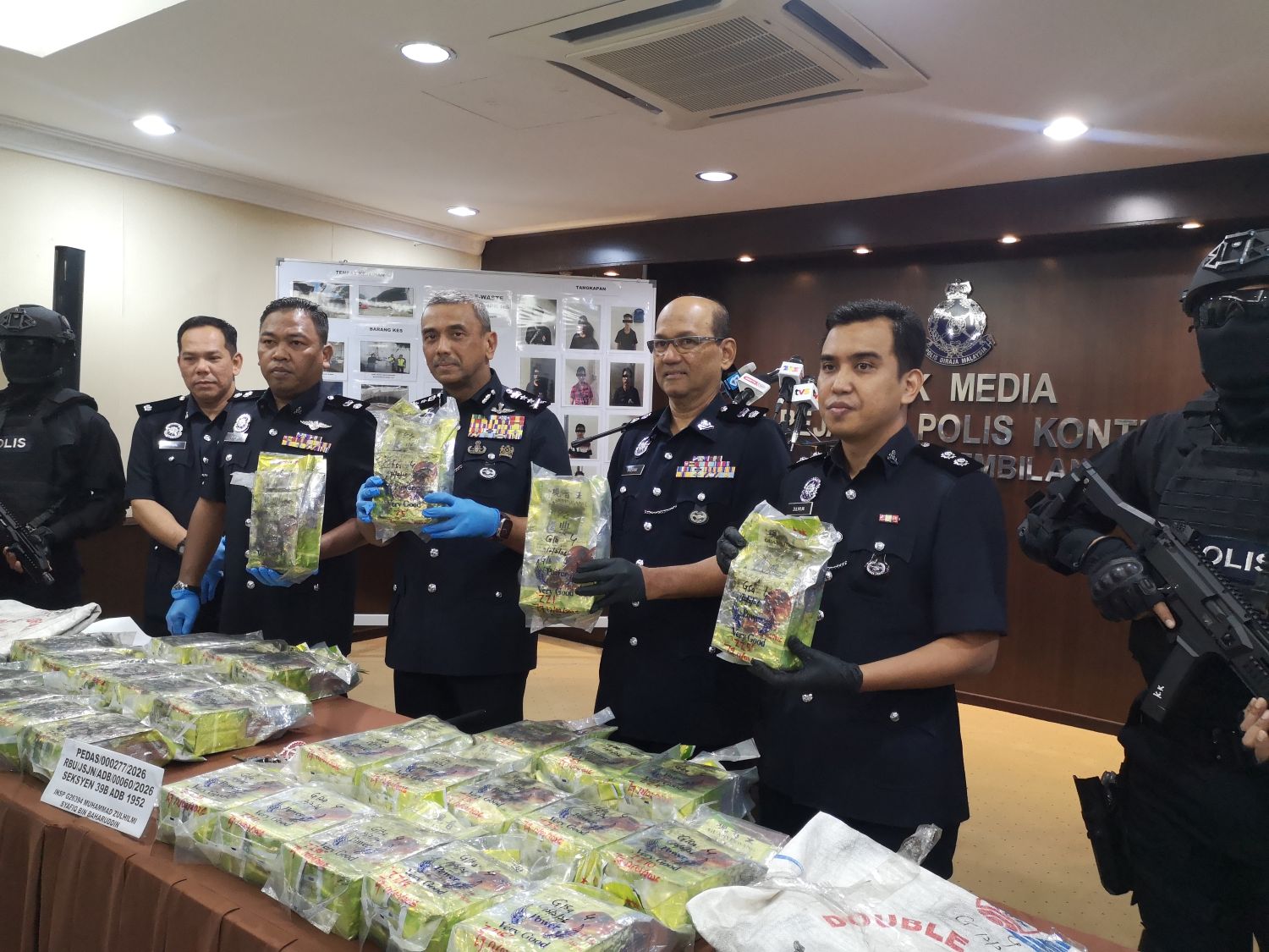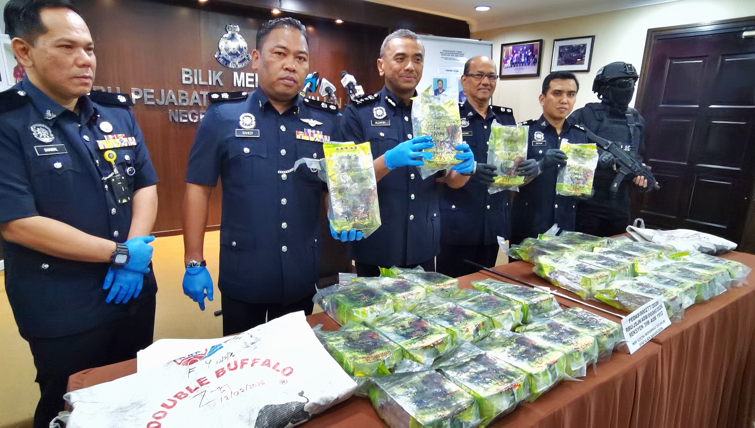 Ketua Polis Negeri Sembilan, Datuk Alzafny Ahmad berkata, dalam operasi itu, dua lelaki berusia dalam lingkungan 30-an yang juga rakan sejak sekolah ditahan pada pukul 3 petang ketika menaiki kereta sewa jenis Perodua Bezza.