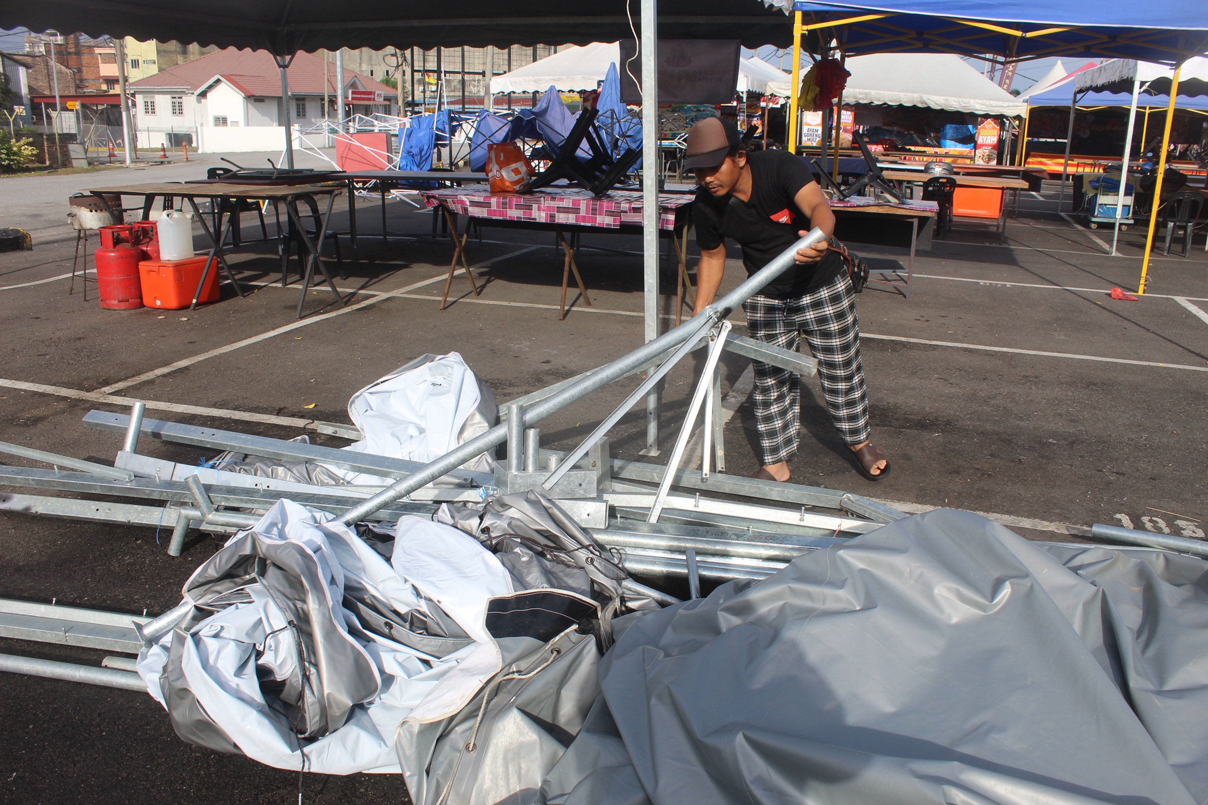 “Saya berbincang dengan peniaga lain untuk membaiki khemah-khemah yang rosak bagi membolehkan perniagaan berjalan seperti biasa. Pada hari pertama puasa biasanya ramai pengunjung dan di situlah rezeki kami,” katanya ketika ditemui di sini semalam.