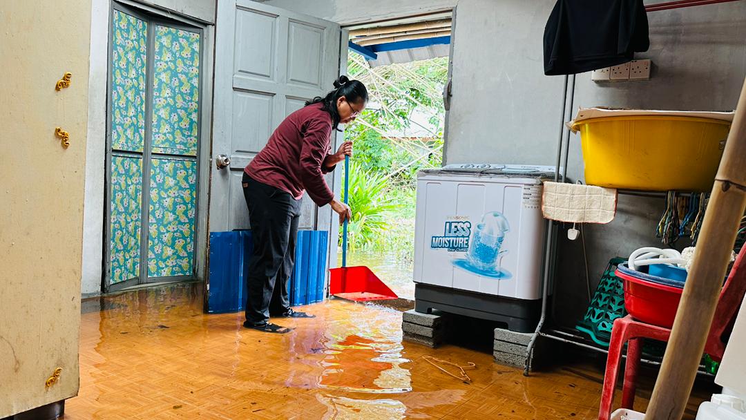 “Petang semalam hujan lebat dalam dua jam, air naik mendadak di bahagian dapur sehingga paras betis. Masa itu dah dekat nak berbuka puasa dalam pukul 7 malam.