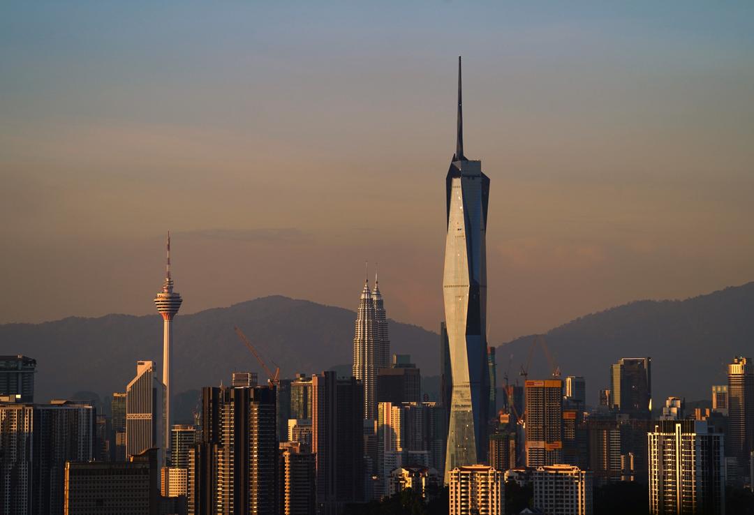 Pemandangan Menara Merdeka 118 ketika waktu senja.