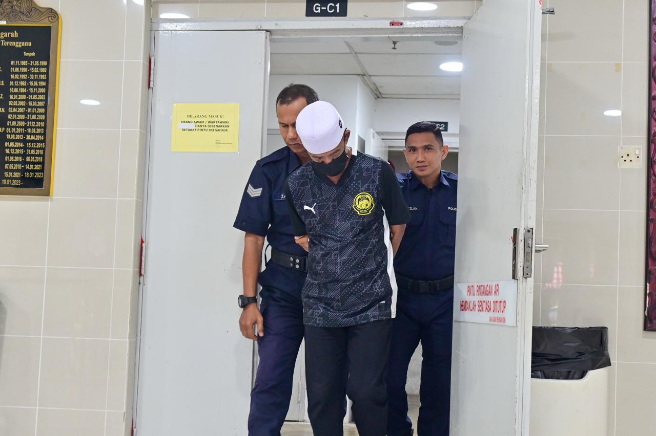 Mohammed Rashid (tengah) dipenjara lapan tahun dan dua sebatan kerana melakukan amang seksual terhadap dua budak perempuan di Mahkamah Sesyen Kuala Terengganu hari ini.