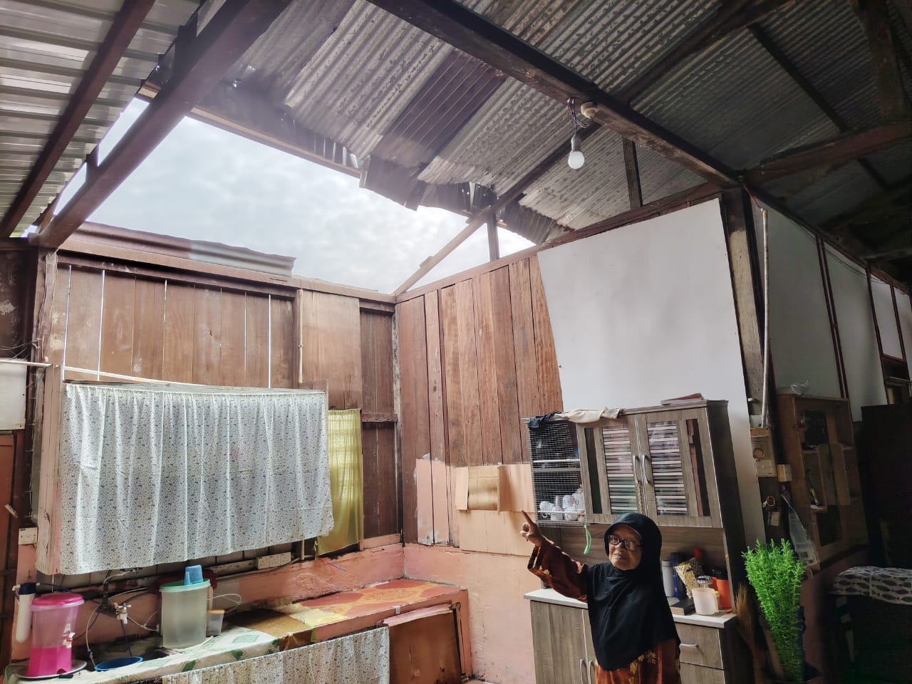 Mariam Nor, 93, dan menantunya, Hadmah Ali, 70, hanya berdua berada di dalam rumah tiba-tiba angin kuat menerbangkan zink rumah di bahagian dapur dan tengah rumah pada kira-kira pukul 5 petang.