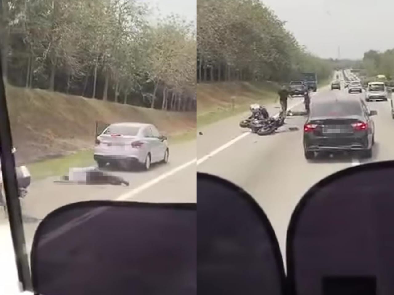 “Kemalangan dipercayai berlaku apabila penunggang motosikal tersebut telah terlanggar seorang pegawai polis yang sedang membuat pemeriksaan ke atas seorang lelaki di lorong kecemasan.