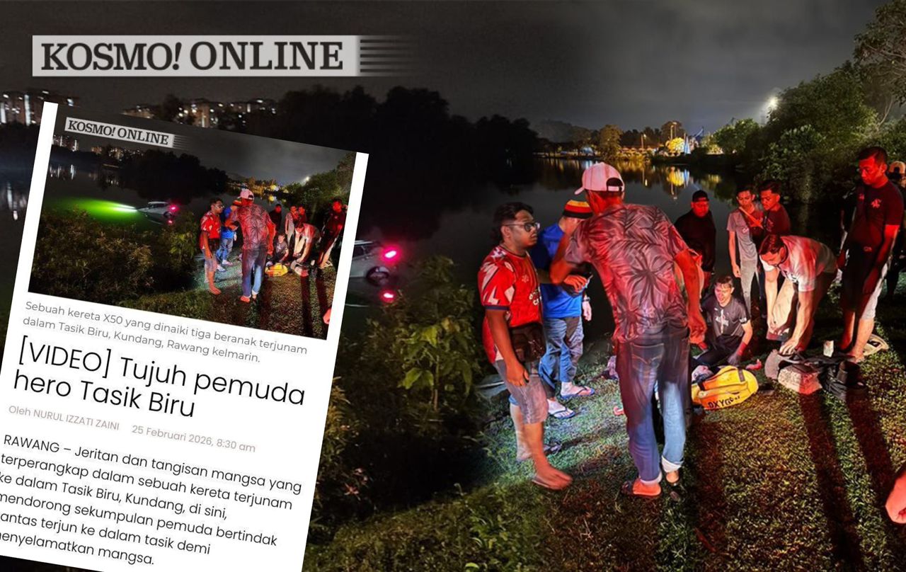Hari ini Kosmo! melaporkan jeritan dan tangisan mangsa yang terperangkap selepas kereta dinaiki terjunam ke dalam Tasik Biru mendorong sekumpulan pemuda terjun untuk menyelamatkan nyawa ketiga-tiga mangsa.