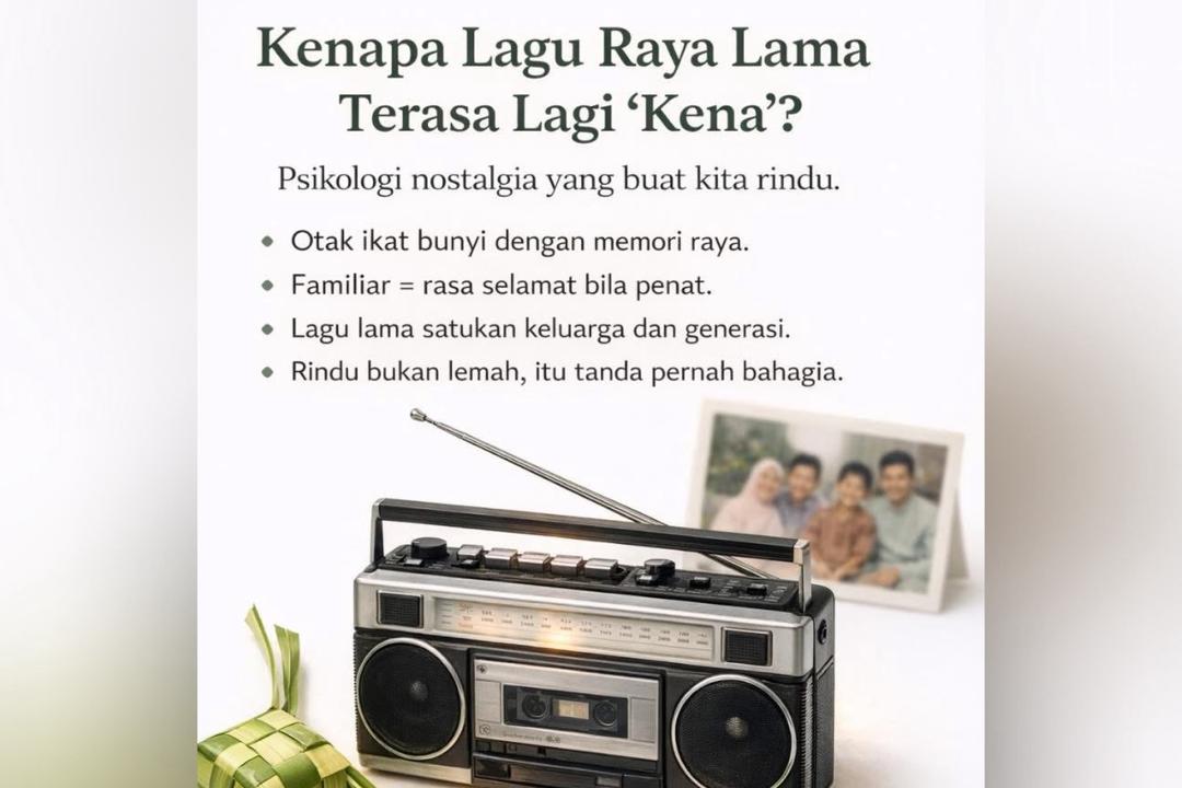Menerusi satu hantaran di Facebook, Public Health Malaysia (PHM) menjelaskan, lagu raya lama bukan sekadar hiburan, sebaliknya bertindak sebagai ‘kunci’ yang membuka almari memori dalam fikiran seseorang.