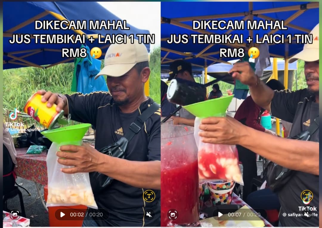 PETALING JAYA – Seorang peniaga gerai minuman meluahkan kekecewaan kerana masih dikecam walaupun menjual sebungkus jus tembikai pekat yang dicampur satu tin laici pada harga RM8.