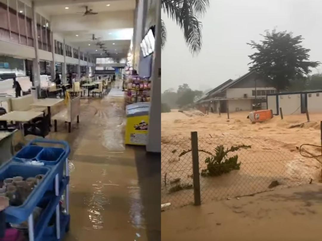 [VIDEO] Banjir kilat R&R Nilai, air masuk sampai ruang makan