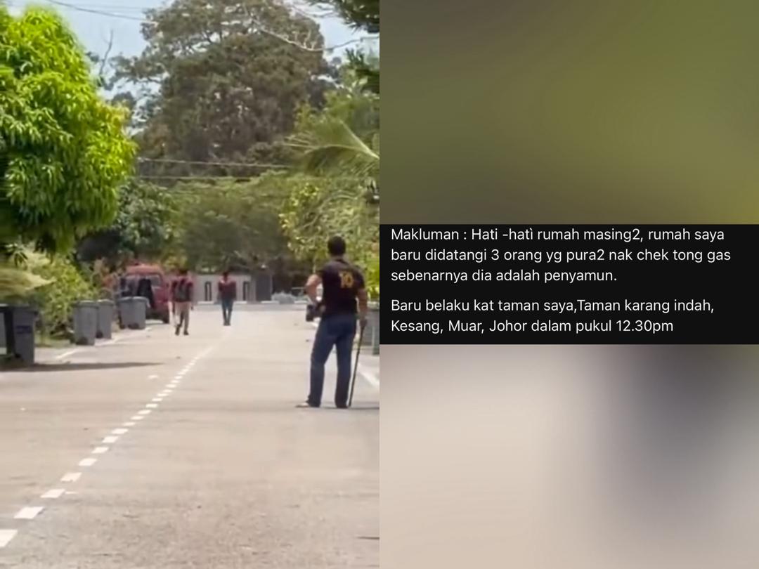PETALING JAYA – Tindakan mencurigakan tiga individu lelaki yang datang ke rumah dengan alasan mahu memeriksa tong gas mencetuskan kebimbangan dalam kalangan penduduk di Taman Karang Indah, Kesang, Muar semalam.