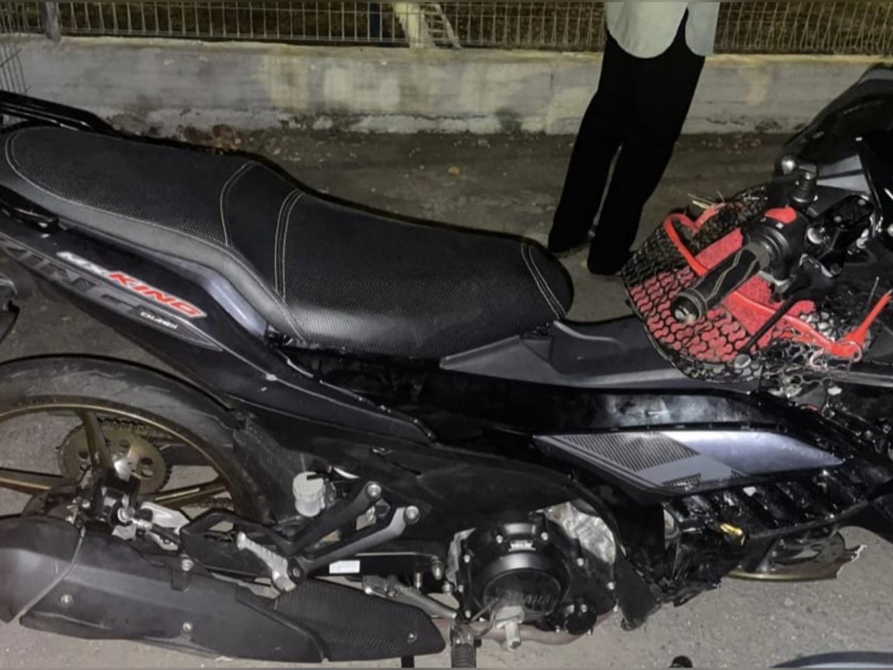Keadaan salah satu motosikal yang terlibat kemalangan di Jalan Kampung Dato Hormat, Sungai Air Tawar, Sabak Bernam.