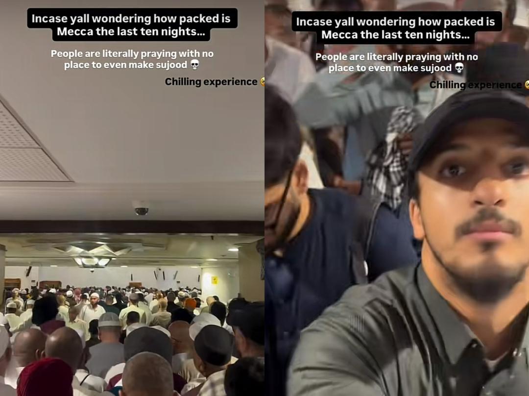 “Sekiranya kamu semua tertanya-tanya bagaimana betapa padatnya di Mekah pada 10 malam terakhir. Orang ramai solat tanpa ada tempat untuk sujud,” kata pengguna tersebut pada videonya.