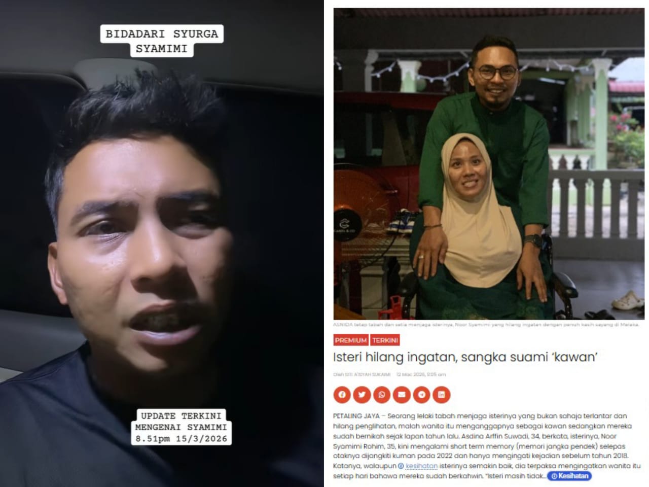 PETALING JAYA – “Agak merisaukan kami, respons tak seperti biasa, doakan Syamimi.” Demikian kata Asdina Arffin Suwadi, 34, berhubung keadaan terkini isterinya yang sedang menerima rawatan di Hospital Rembau, Negeri Sembilan.
