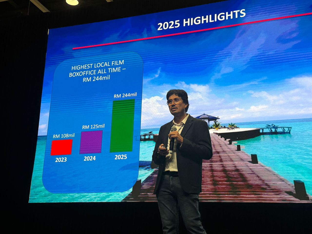 Dalam perkembangan sama, industri filem tempatan mencatat sejarah apabila kutipan pecah panggung mencecah RM244 juta pada 2025, meningkat mendadak berbanding RM108 juta pada 2023.