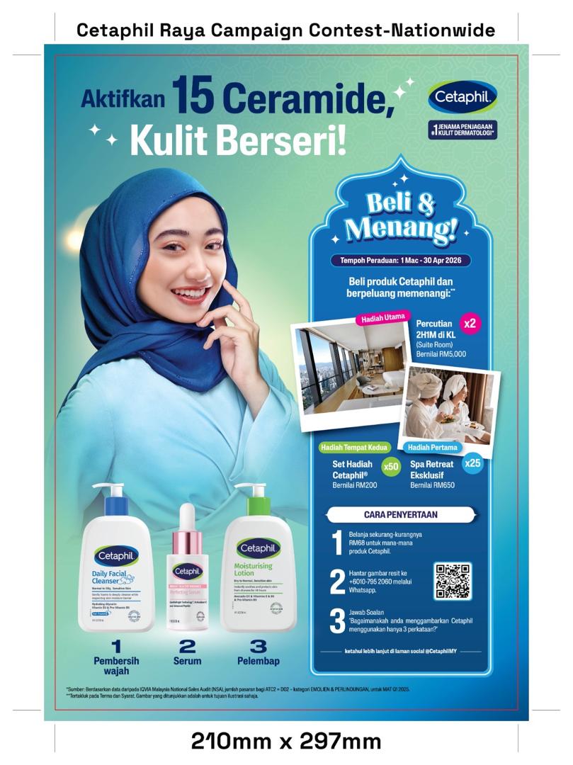 Sempena hari raya, Cetaphil membawakan kempen Aktifkan 15 Ceramid, Kulit Berseri sehingga 30 April 2026 dengan tawaran hadiah menarik.