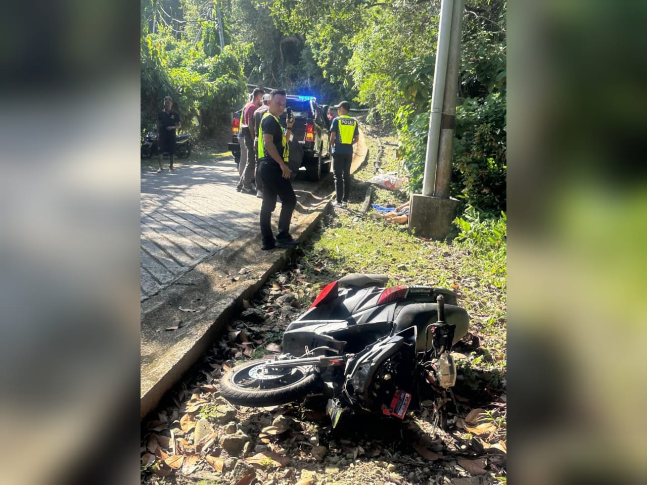 “Apabila sampai di tempat kejadian motosikal dinaiki, mangsa telah hilang kawalan kemudian terbabas sendiri ke bahu jalan sebelah kiri.