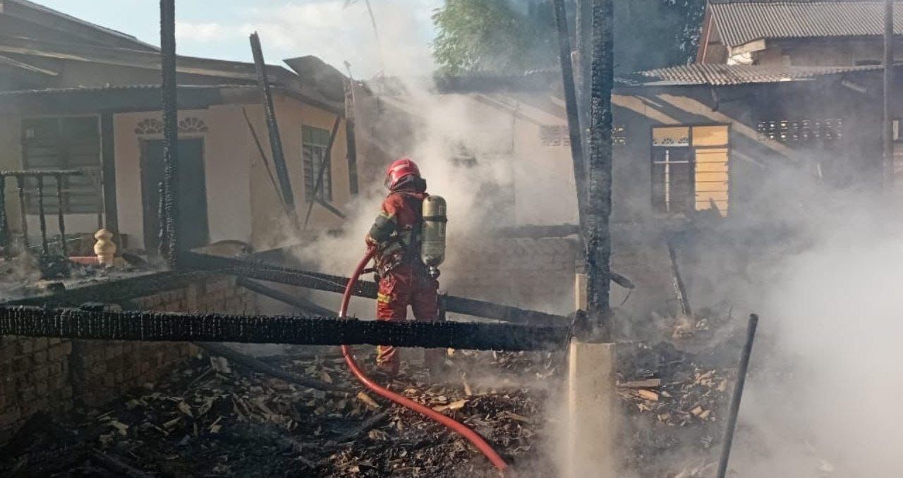 Difahamkan kebakaran berlaku sewaktu sebahagian penghuni tiga rumah berkenaan keluar beraya.