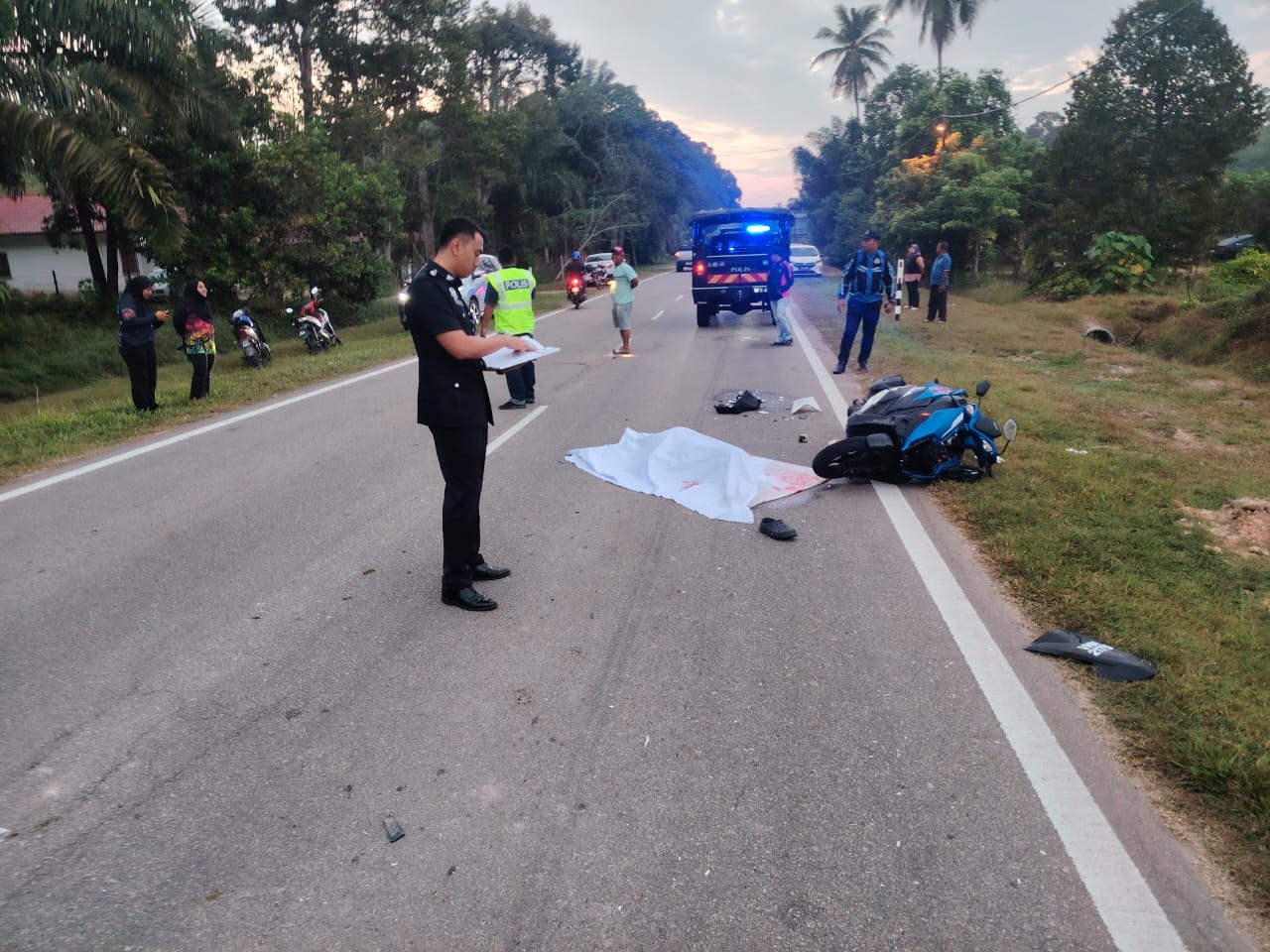 Ketua Polis Daerah Jempol, Superintendan Norhisham Mustapar berkata, dalam kejadian pukul 6 pagi itu, mangsa yang menunggang motosikal jenis Suzuki Avenis dikatakan dalam perjalanan ke tempat kerja.