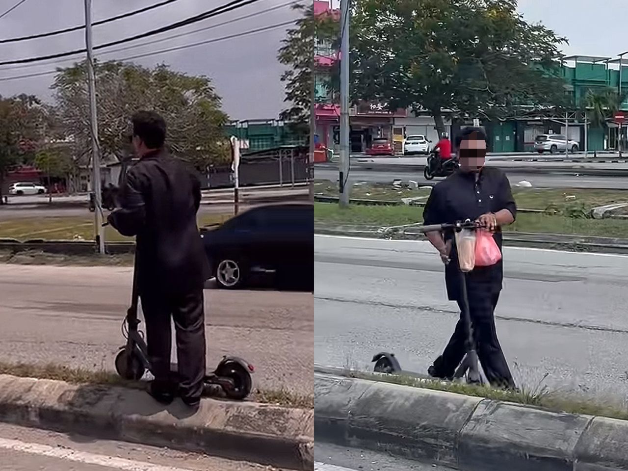 Menerusi video yang tular di TikTok Ibnu_Ahadun94, pemuda yang memakai baju Melayu berwarna hitam tersebut dengan selamba dilihat menunggang skuter di celah deretan kenderaan menuju ke sebuah gerai berhampiran.