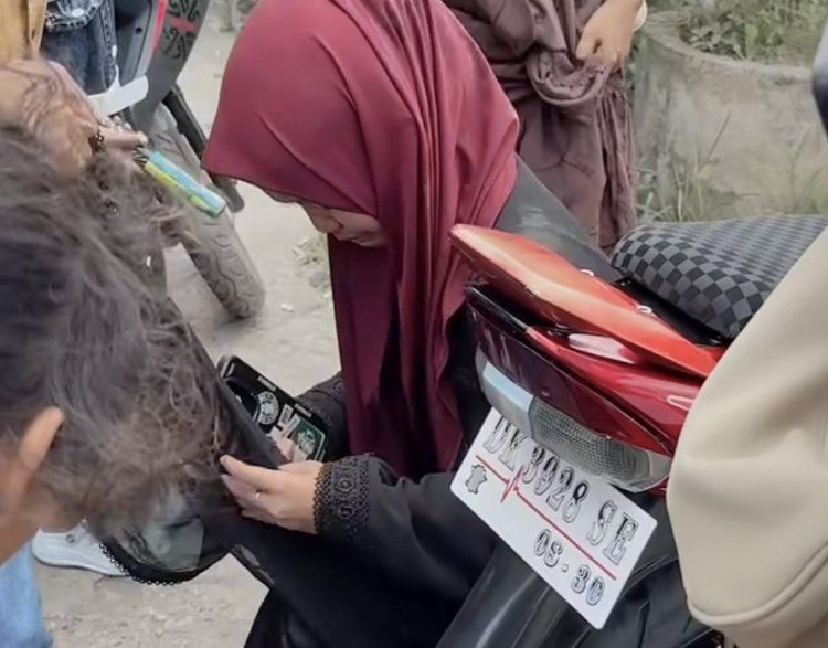 Rakaman video dimuat naik di platform TikTok oleh akaun @officiallambeturah menunjukkan penduduk tempatan cuba melepaskan tudung mangsa yang tersangkut pada rantai motosikal.