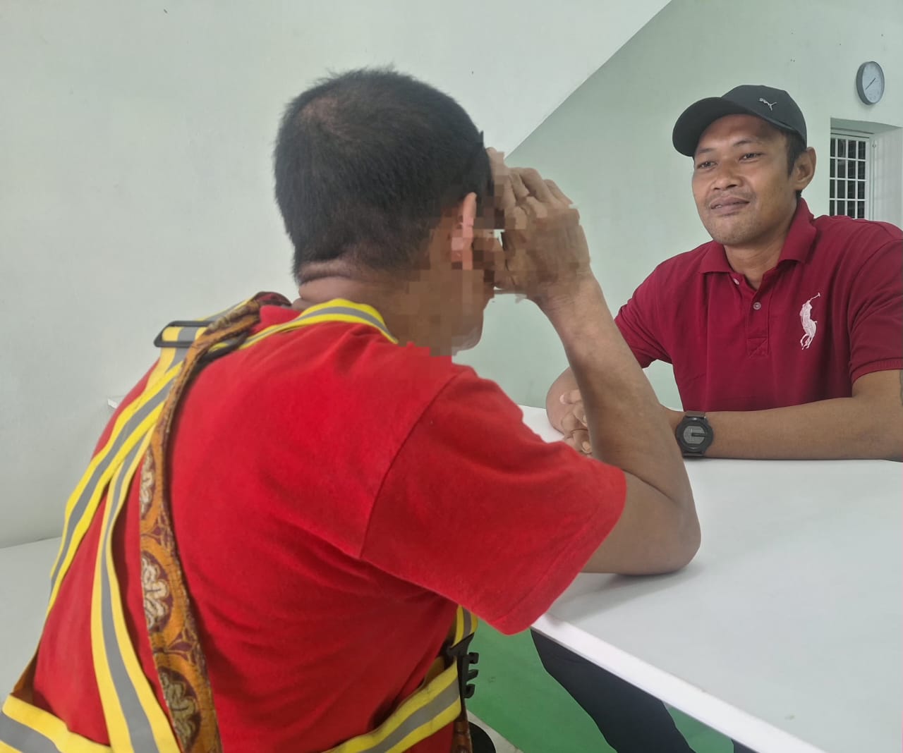 MOHD. SAFRI (kanan) mendengar luahan daripada Zack yang mahu mengubah hidupnya di Klang baru-baru ini.