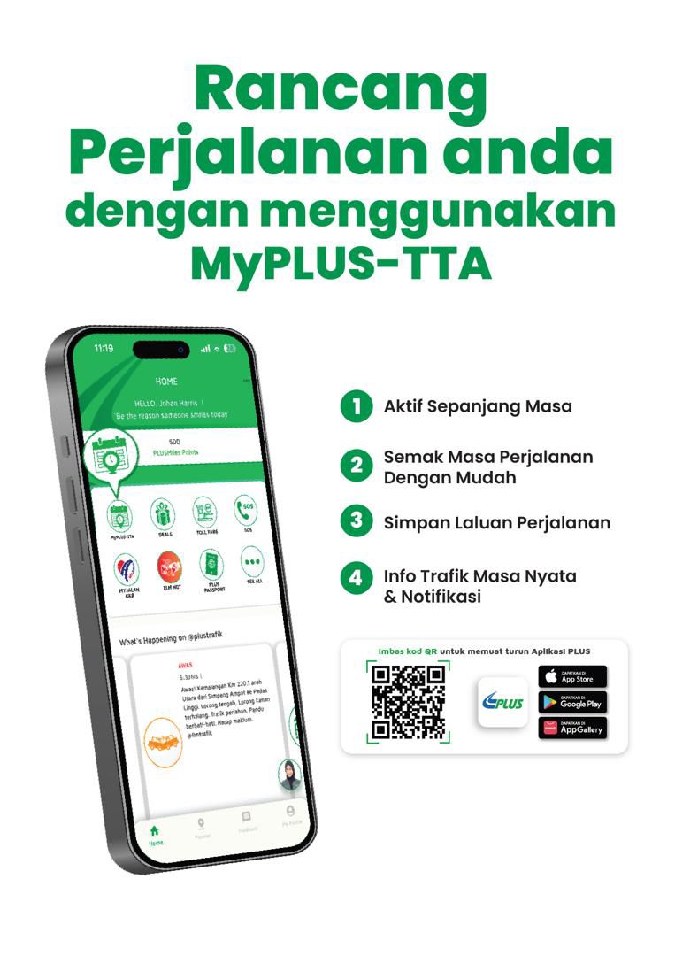 Sehubungan itu, PLUS mengingatkan orang untuk merancang perjalanan lebih awal dengan menggunakan sistem jadual perjalanan digital MyPLUS-TTA bagi mengurangkan kesesakan di lebuh raya.