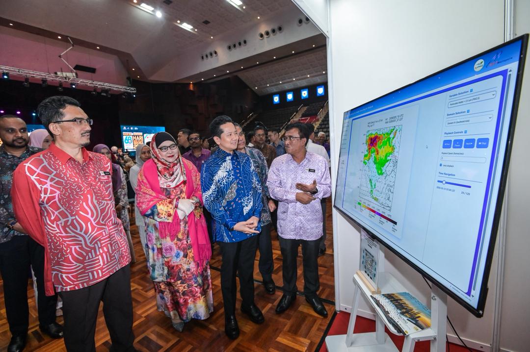 Mohd Hisham (hujung kiri) ketika melawat reruai pameran pada Majlis Perasmian Hari Meteorologi Sedunia 2026 di Dewan Canselor Tun Abdul Razak, UKM. -Foto oleh SYAKIR RADIN/KOSMO!